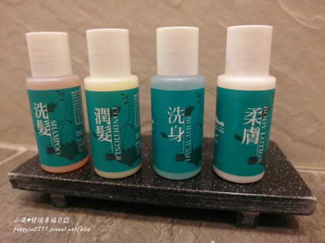 長榮鳳凰酒店的湯屋提供四種備品:洗髮、潤髮、洗身、柔膚,非常齊全