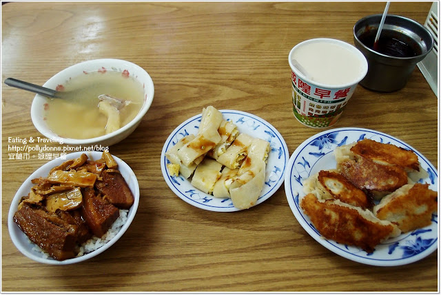 焢肉飯搭配苦瓜排骨湯,煎餃蛋餅則配豆漿,十分相配的組合。