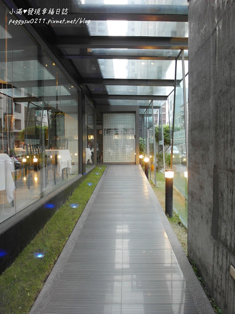 入口的長廊兩側都是透明玻璃窗,配上充滿氣氛的燈光