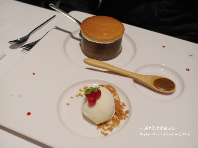 「法月套餐」的另一份甜點:香草舒芙蕾搭手工香草醬