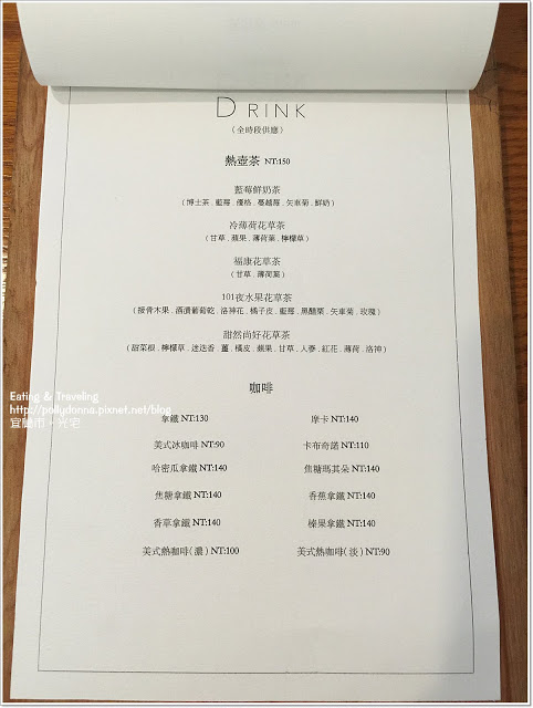 menu也和之前的不同了,這裡的menu算是十分樸素,用白紙印印而已。早午餐最低消費為NT.100,下午茶最低消費為一杯飲料。