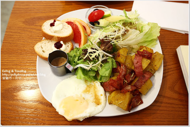 哩賀,ㄠˊ早有炒地瓜、太陽蛋、沙拉、水果、法國麵包佐酸奶。因為麵包好小塊,看起來就吃不飽的感覺╮(╯▽╰)╭。我覺得食材還蠻新鮮,最好吃的是那一小杯胡麻醬,搭配生菜很不賴,其餘味道上就一般般,似乎不是太對我的胃。(NT.158)