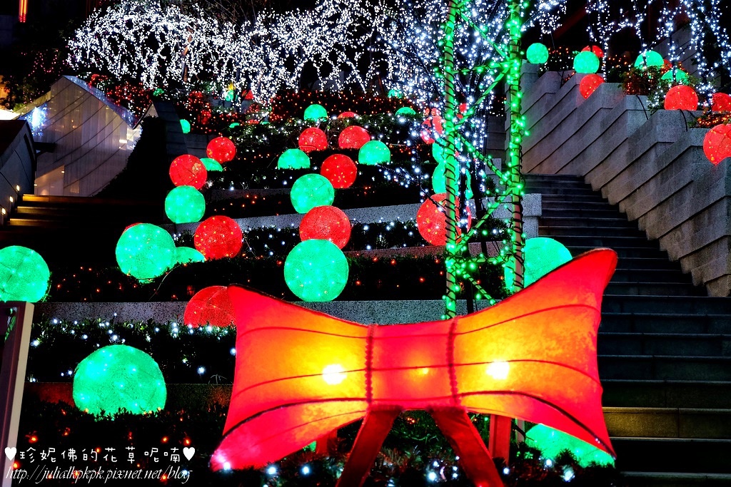 台北信義商圈的百貨公司及街道現在都被美麗的燈泡及耶誕節的布置襯托得非常的耀眼