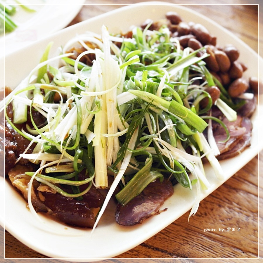牛肚、牛筋、牛腱裝成一盤在鋪上一大把青蔥!