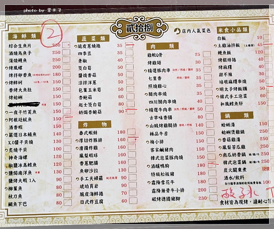 "貳拾捌號倉鮮蚵燒烤"家的燒烤食材相當多而且採現點現做的方式,