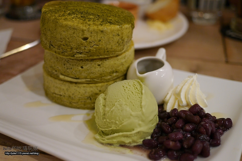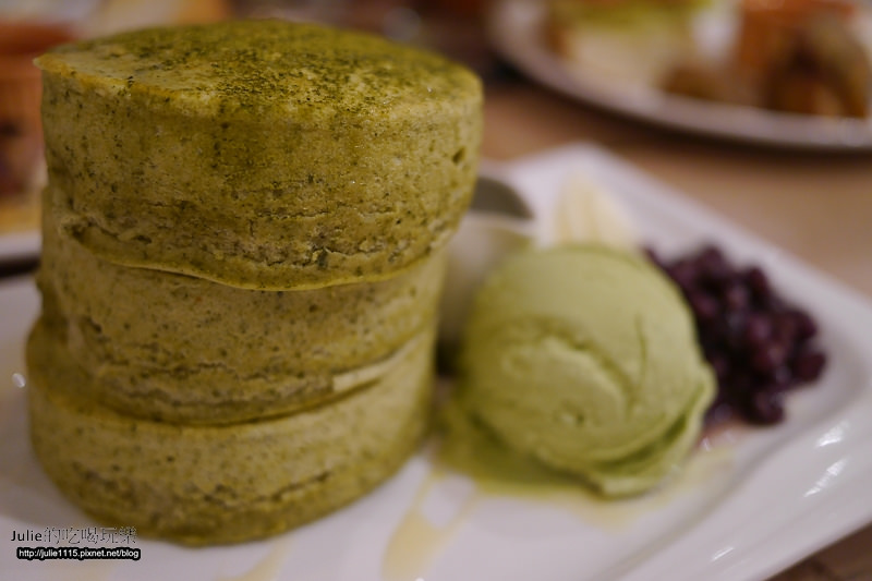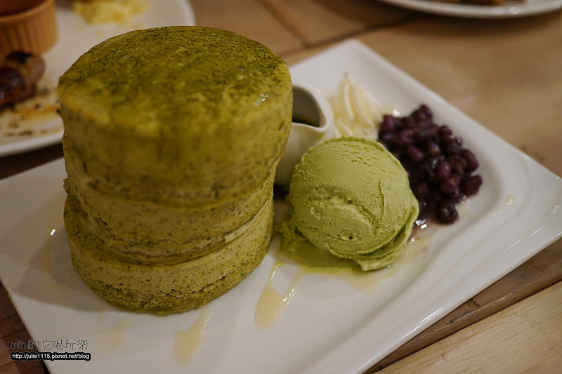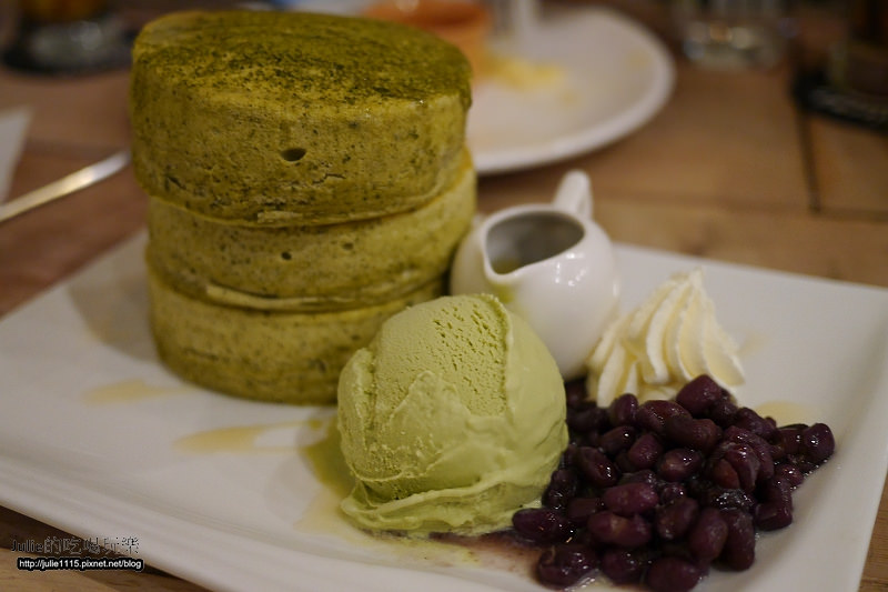 不過他們家的抹茶鬆餅不會太甜,甚至帶點抹茶的苦味,喜歡吃甜的朋友可以另外淋上抹茶糖漿。
