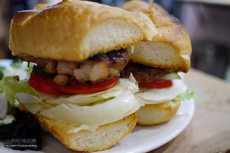 雞腿肉還挺多汁的,醃漬的也還算入味,搭配上爽口的生菜跟扎實的麵包皮。