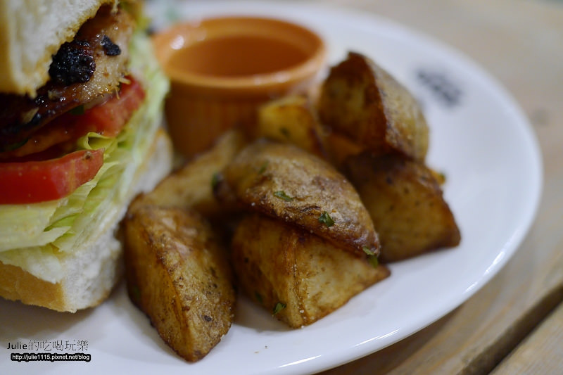 ↑配菜的部分除了生菜之外,還有馬鈴薯塊~我挺喜歡吃馬鈴薯的。
