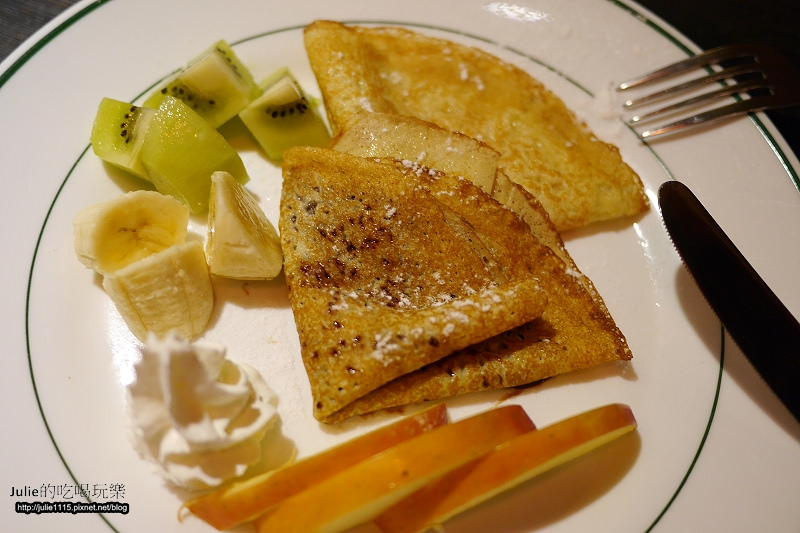 ↑甜點的部份我挑了法式薄餅。沒想道除了薄餅之外還給了許多水果耶。