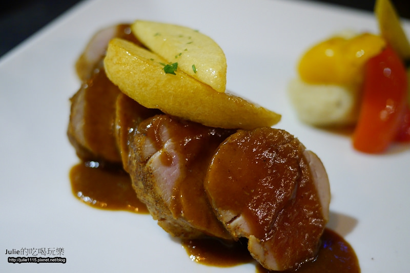 ↑當天很熱門的主菜,蘋果豬小菲力,套餐價$600,單點價$380