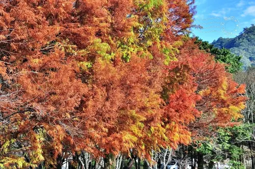 但奧萬大幾株落羽松已經是在陽光底下閃閃發亮般的超美喔