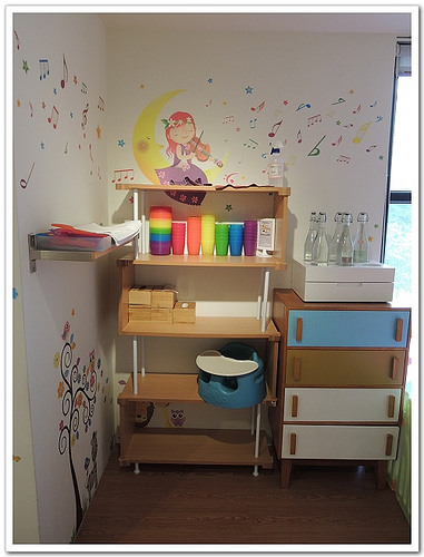 這裡有提供兒童餐具(IKEA)、水採自助式,特別一提有提供1~2個寶寶椅,對於需要餵食副食品的學妹來說,挺是方便的。