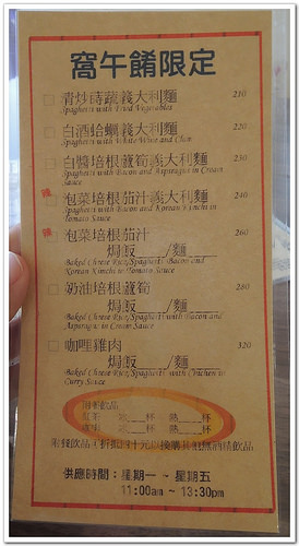 中午則是有義大利麵套餐。(不過僅限於周一至周五平日中午供應)