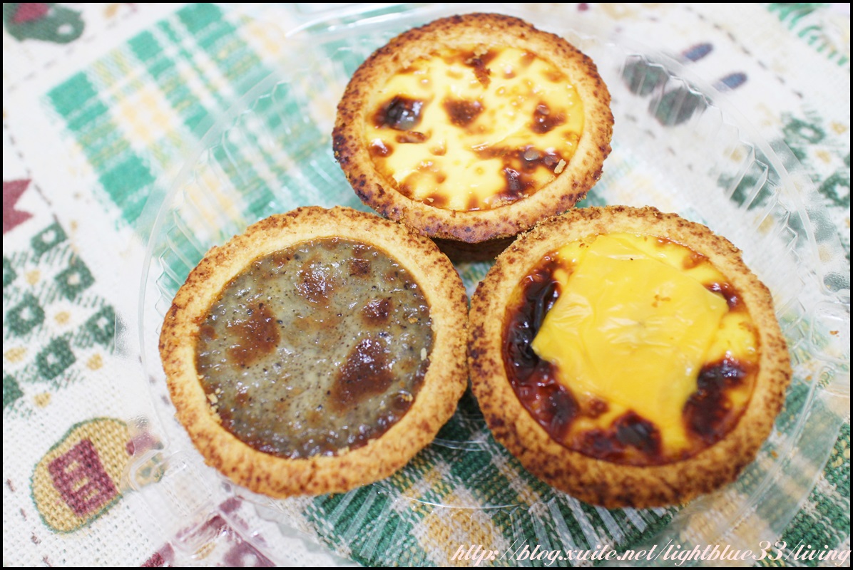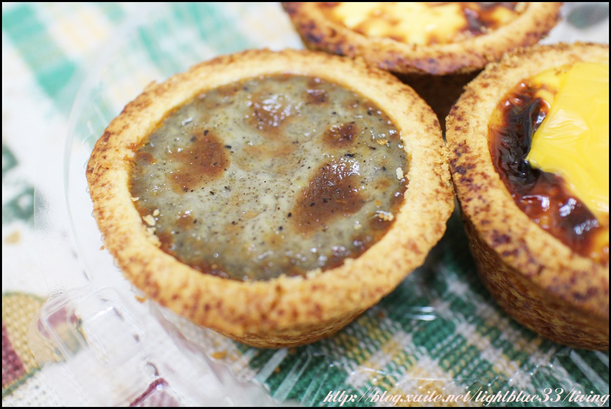 因為第一次買的三種口味我都很喜歡,屬於比較變化款,所以第二次才吃原味的時候就會覺得比較普通,不過第一次買的人倒是可以先從原味嘗試起,他們家蛋塔皮看起來都比較焦黑,但是其實吃起來並不會覺得過焦,口感上屬於酥中帶一點鬆,用刀切的話會挺容易散成粉屑。蛋液也沒有加太多糖,所以雖然份量十足,但是吃起來並不會覺得腥膩噁心