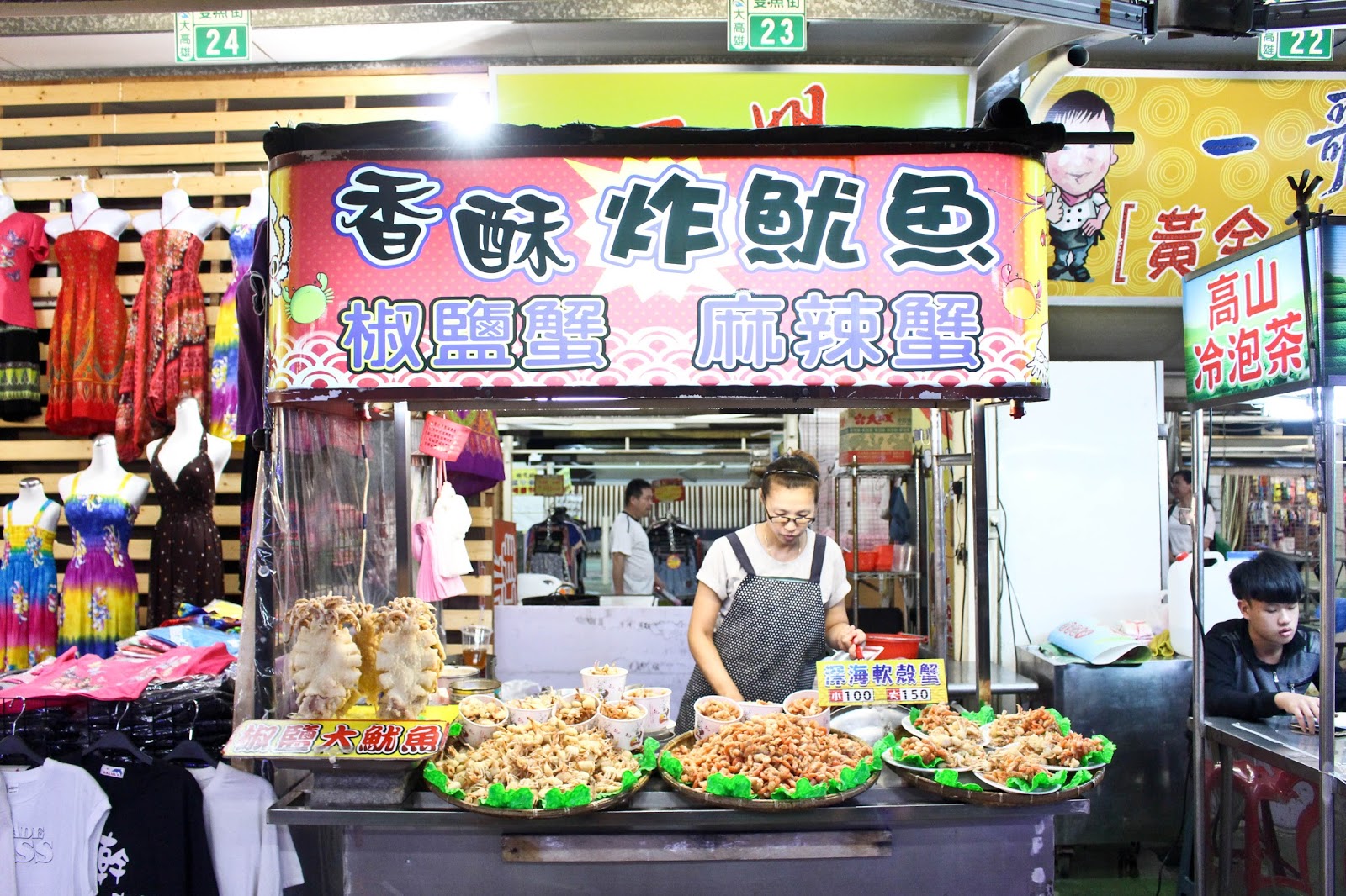 2015.08.27金鑽夜市還記得一年多前金鑽夜市剛開幕盛況空前連逛個夜市都覺得擠到無法前進沒想到再次看到金鑽夜市的新聞卻是頻臨黯然落幕所剩無幾的店家支撐著整個空蕩的場地零零散散的中國遊客在夜市間穿梭也許是因為下雨天比較少人之前的盛況不復存在逛了好幾圈發現這家店是最吸引我想買的攤販於是買了一份小份的蝦子[軟殼蝦]外表炸的酥酥脆脆輕輕一咬即化開.能感覺的出這家的蝦子還滿新鮮的夜市難得會出現這麼新鮮的味道記得第一次來金鑽夜市也是來吃蚵仔煎老闆娘動作俐落迅速的煎著蚵仔煎很專業絲毫不受在一旁拍照的我影響[蚵仔煎]$60蚵仔煎整體味道上還算ok[脆皮臭豆腐]$50脆皮臭豆腐就不太合我的味口臭豆腐帶點酥脆感不過又浮現出一種奇怪的味道逛了這麼久最後當然要來一杯冰涼的飲料解渴[木瓜牛奶]木瓜牛奶還算不錯濃郁帶著木瓜香氣謝謝觀賞~[金鑽夜市地址:高雄市前鎮區凱旋四路788號]