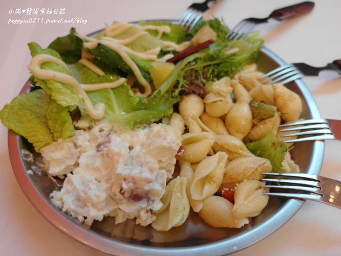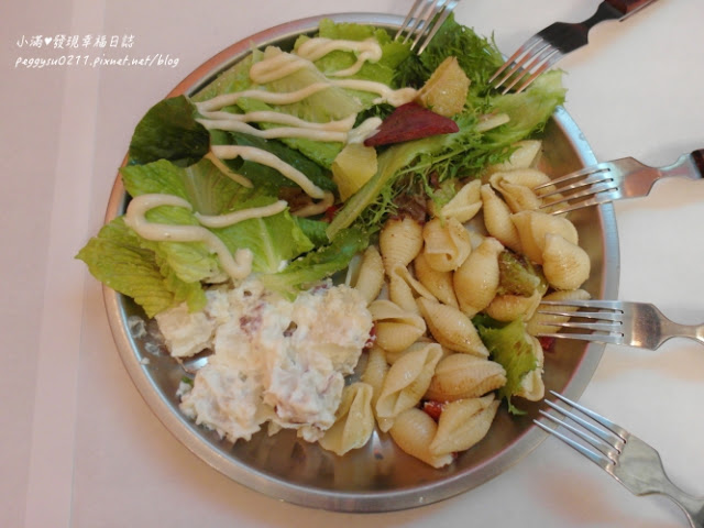 裡面包含剛剛在吧台區看到的貝殼麵沙拉、馬鈴薯沙拉跟凱薩生菜沙拉
