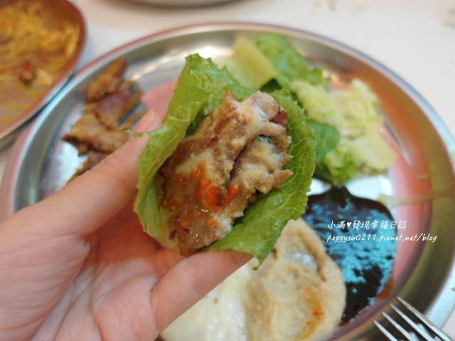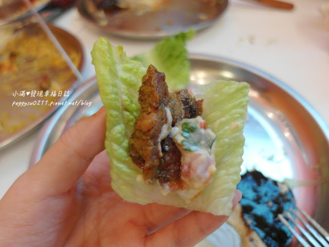 小滿喜歡的吃法,就是將烤肉片沾上兩三種醬,再夾入生菜中