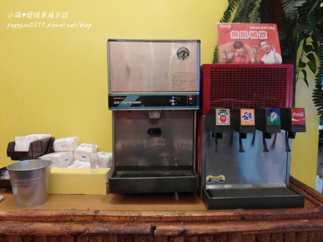 點完餐後服務生立刻給我們兩個紙杯,想喝什麼就自己去裝