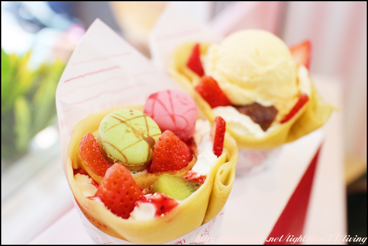 菜單非常豐富,就算我出發前有先上網搜尋一下有個底,可是現場看到那麼多口味,還是什麼都想吃,無法取捨啊!不過還好服務人員很有經驗,會先詢問想 吃甜或鹹的、有比較想吃甜一點的還是酸一點的,或者有沒有特別想要吃有加冰淇淋的、還是要指定有草莓口味的......就這樣一關關篩選之後,終於選好我想吃的口味啦~