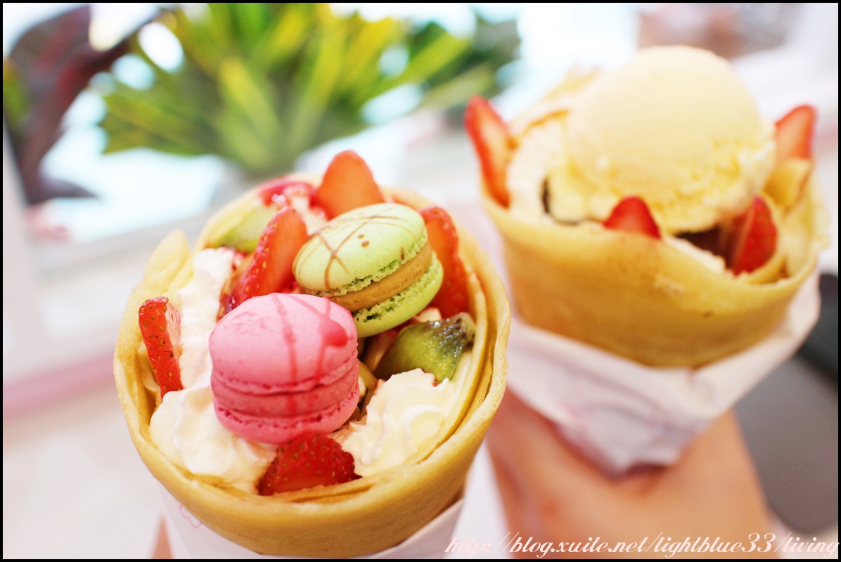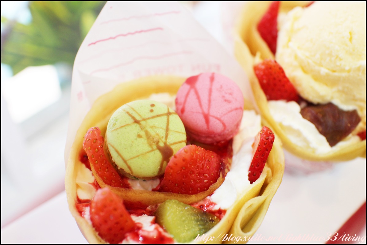 這是我在家裡搜尋別人食記看到照片就決定要點來吃的馬卡龍圓舞曲,但是一看到實品還是忍不住一邊拍照一邊驚呼好漂亮啊!而且草莓跟鮮奶油的香氣真的是一直撲鼻而來~