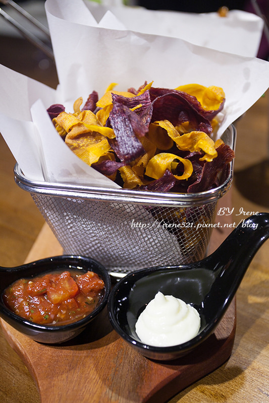 炸雞翅可說是配酒的好朋友了,微酸而肉嫩,頗為開胃,加點莎莎醬滋味更豐富。