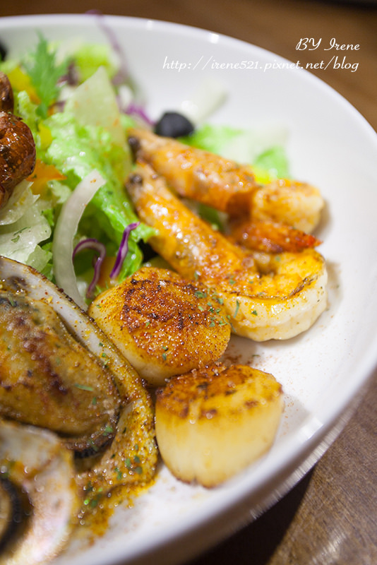 蝦肉緊實彈牙、鮮甜,欖橄油的滑柔濕潤著蝦身,一點也不膩口。