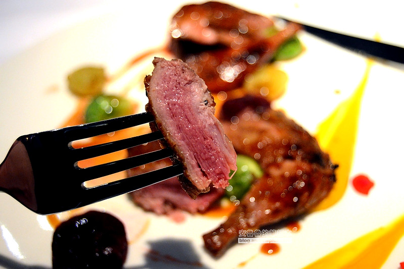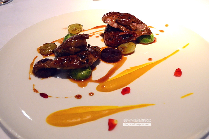 低溫烘培後再進行燒烤讓肉質更鮮美,搭配甜菜根,葡萄,孢子甘藍(外國人感恩節大餐的最愛),讓口味偏重的主食變化出不同美味,安魯魯也不太吃鴿子~但是今天羊肉和鴿子都吃啦! 乳鴿肉吃起來比雞肉來的細嫩~再加上燒烤後香脆的外皮~趕快忘記它是鴿子,就快點送進嘴裡吧!