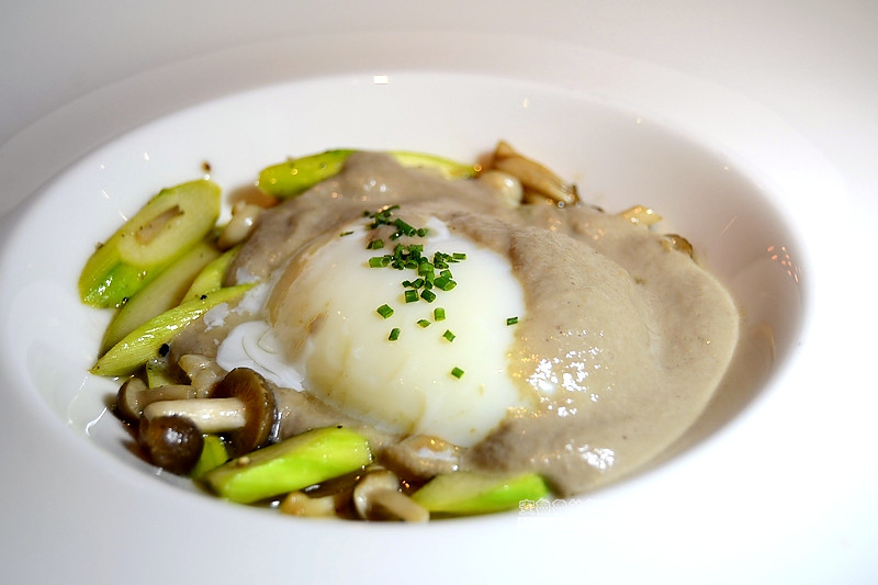 ▼低溫慢煮溫泉蛋配黑松露蘑菇醬
