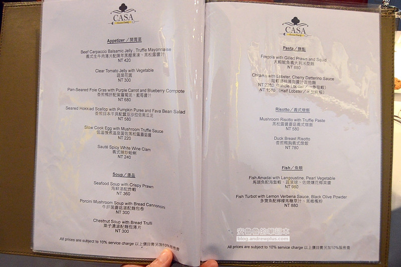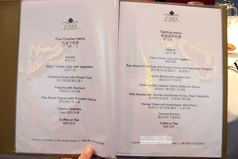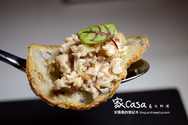 安魯魯的筆記這是一間目前血統還算純正的義法料理餐廳,開頭這句話,其實心情還是有點複雜,就以往和朋友一同用餐的經驗,正統的義大利料理台灣人的接受度其實不太好~雖然台灣人常吃義大利麵或義式燉飯,但是如果吃到麵心、米心硬一點的,不少人直覺就是米麵沒熟難以下嚥。今天來吃的這家 家CASA 是由三位港澳的朋友所開設的餐廳,主廚有米其林餐廳的任職廚師經驗,套餐的價格並不低,但以廚師的功力和食材的選用來看,CP值其實滿不錯的!跟店家聊天的過程中,店家也提到口味的問題~有客人反應食物太鹹,因此主廚在盡量不影響整道餐點的狀況下去只好改良口味! 不過店家也提到: 來這用餐不就是要吃正統的義法料理,如果都改成了台灣口味,那就改做台菜就好囉! 由此足見,店家對於正統的餐點有一定的堅持~安魯魯也很希望這家餐廳可以一直堅持下去啊~
