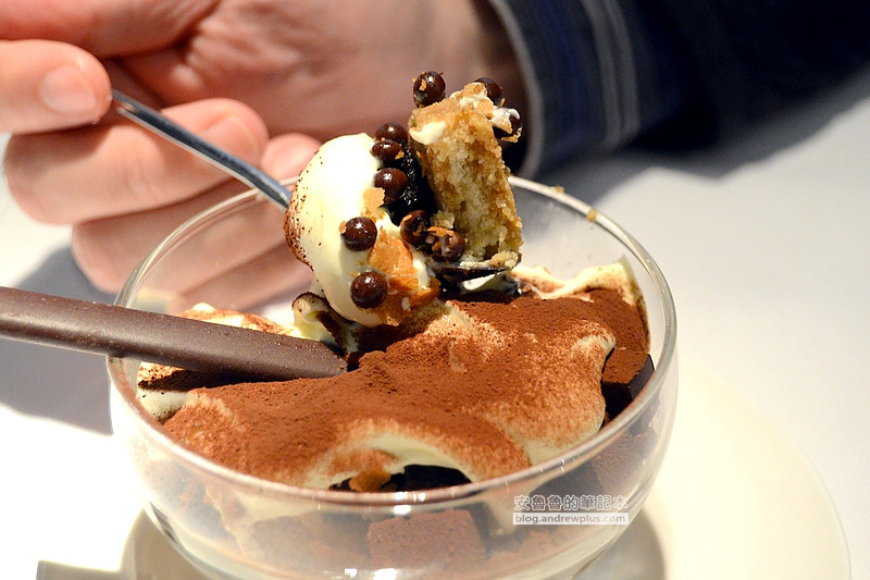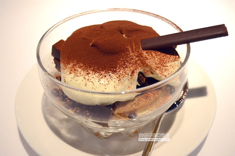 咬起來卡滋卡滋的巧克力米果加微苦的咖啡凍,咖啡酒香在入口後爆發,加碼的甜甜巧克力條,讓整體的巧克力香氣更濃~但是這還不是安魯魯心目中的正港提拉米蘇! 只是一般般的甜點,不過雖然一般般也比外面絕大多數店家賣的好吃多囉!