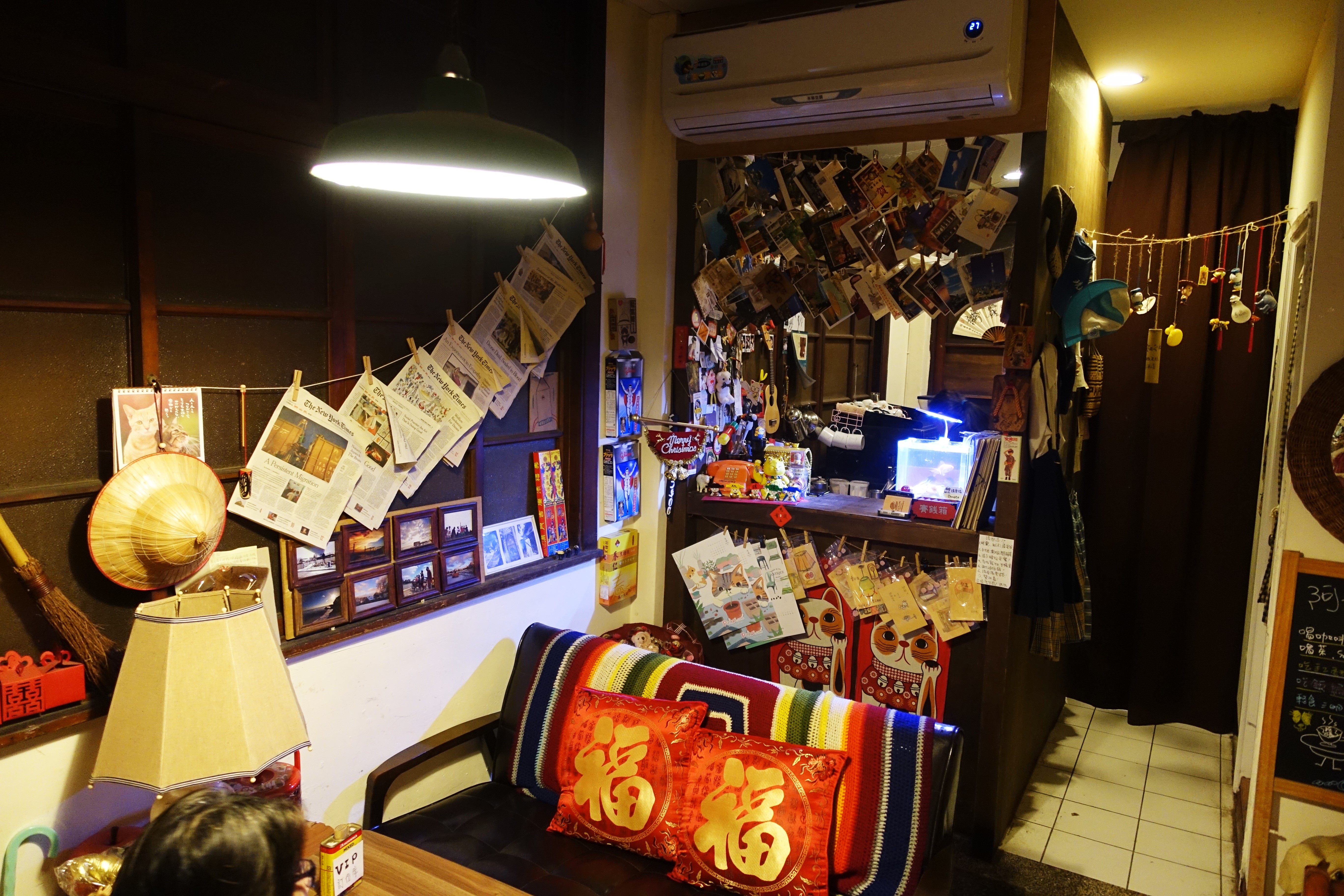 推開門進入店裡,眼前的景觀映入眼簾,心理不由發出:哇!!!的聲響,類似住家的空間裡擺放著老沙發與桌子,隨處可見的懷舊小物。