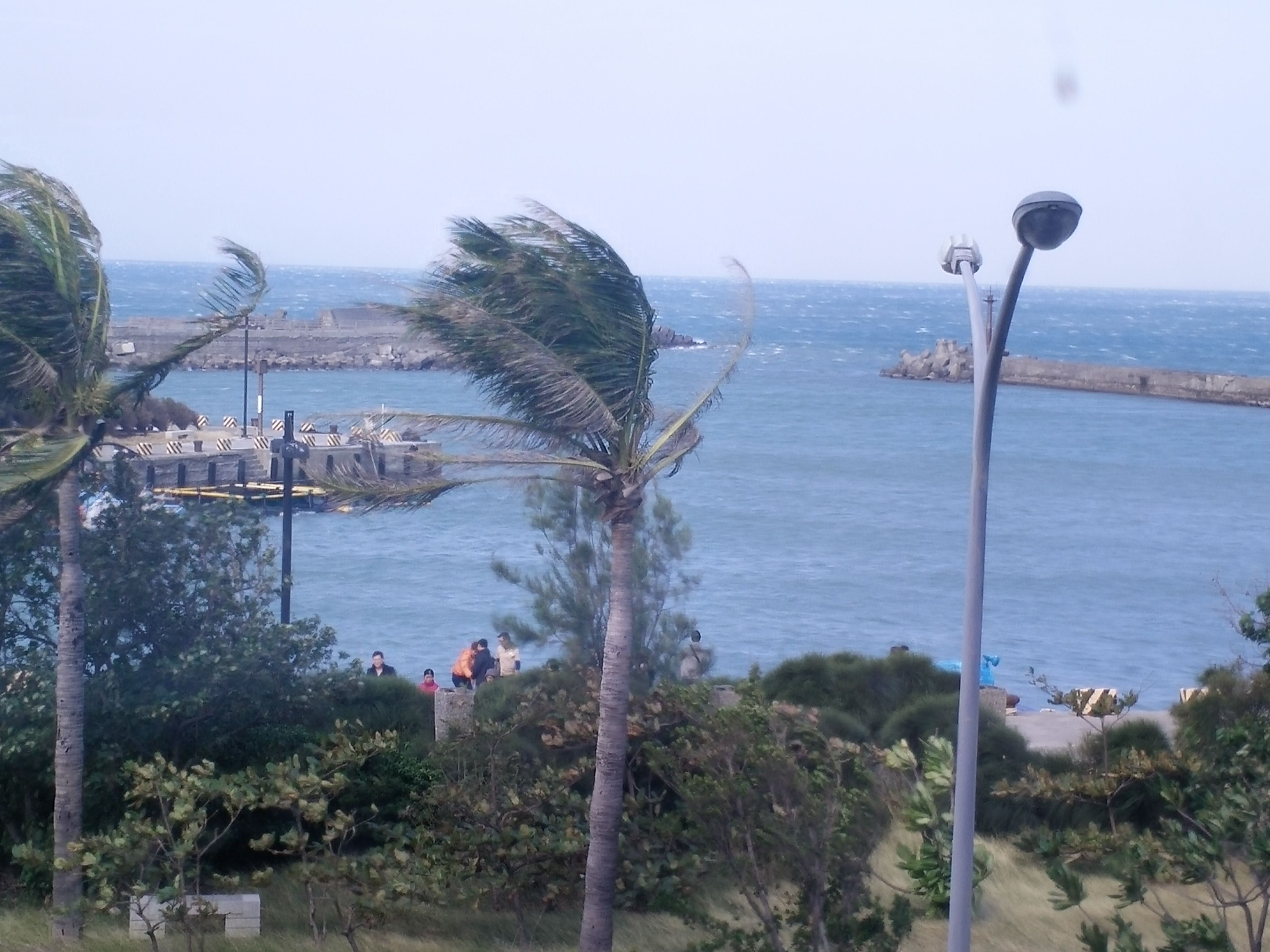 風沙呼嘯而過,海浪洶湧跨過防坡堤,