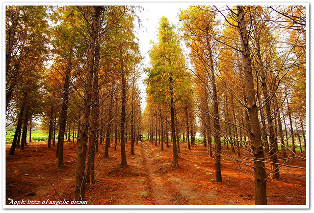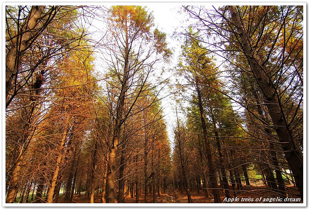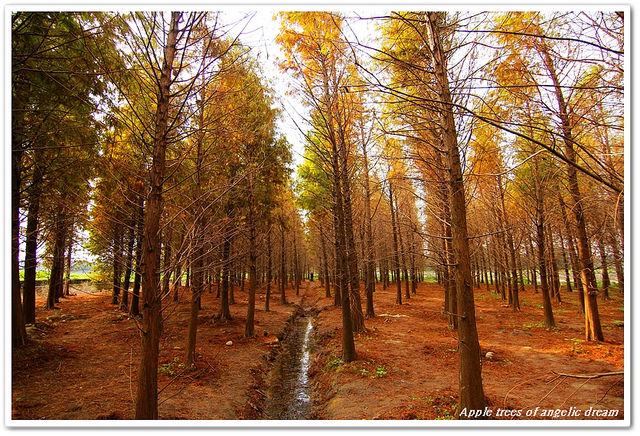 落羽松森林中間有一條土溝,應該是灌溉的引水道!!剛剛好變成一條走道大家都喜歡在這取景