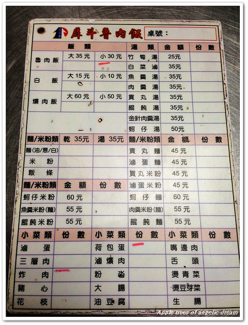 MENU,直接鎖定滷肉飯,店家還有賣麵和米粉價位15~60元,小菜沒有價位都是很基本配備