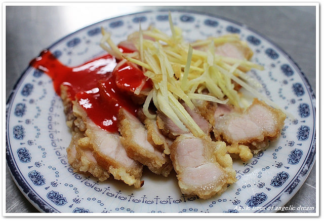 炸肉,簡單說就是炸三層肉片,不過吃起來瘦肉居多,肉質口感微脆略甜不錯吃