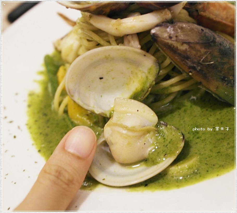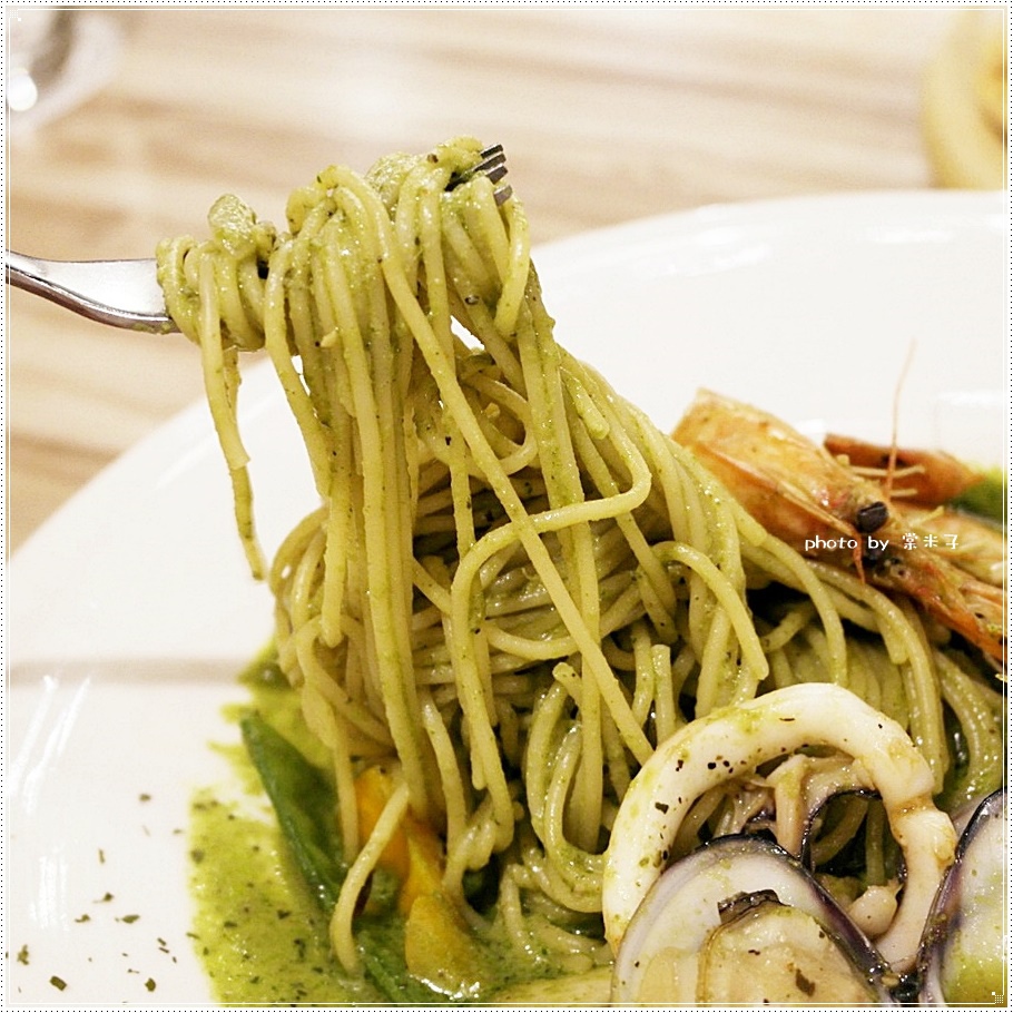 堆成麵麵條QQ不會過硬加上濕潤的青醬很合我的味!!