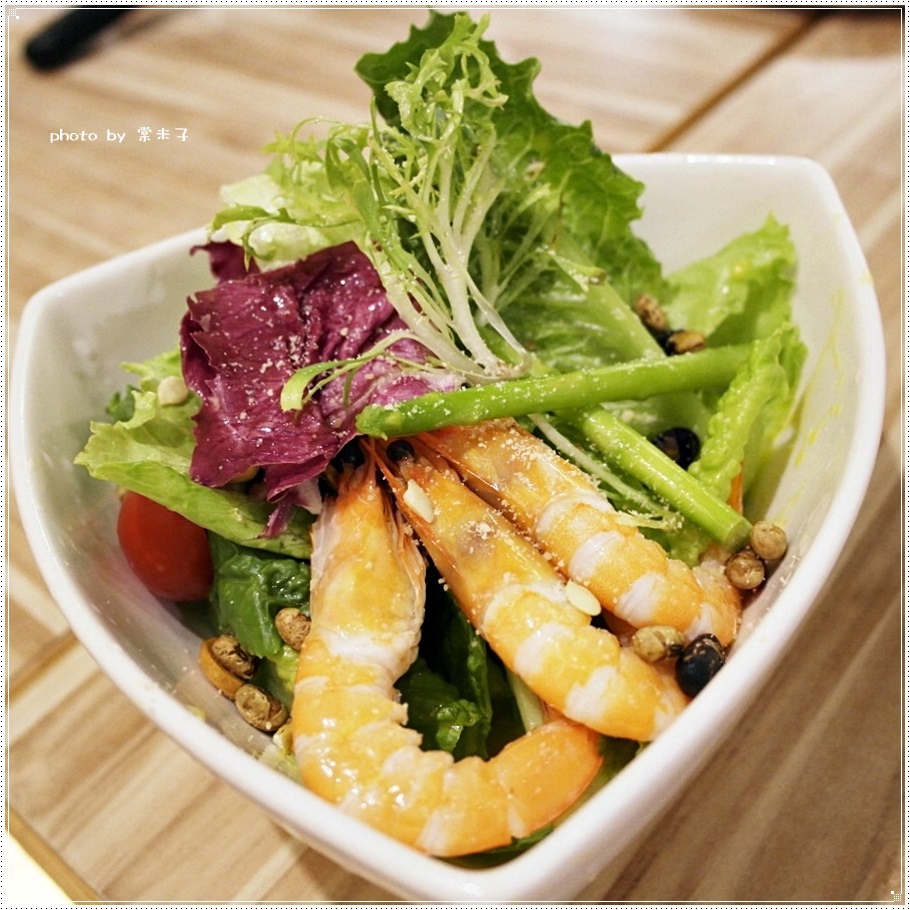 除了剛剛的雞肉和我點的蝦子外還有鴨胸在裏頭唷!!