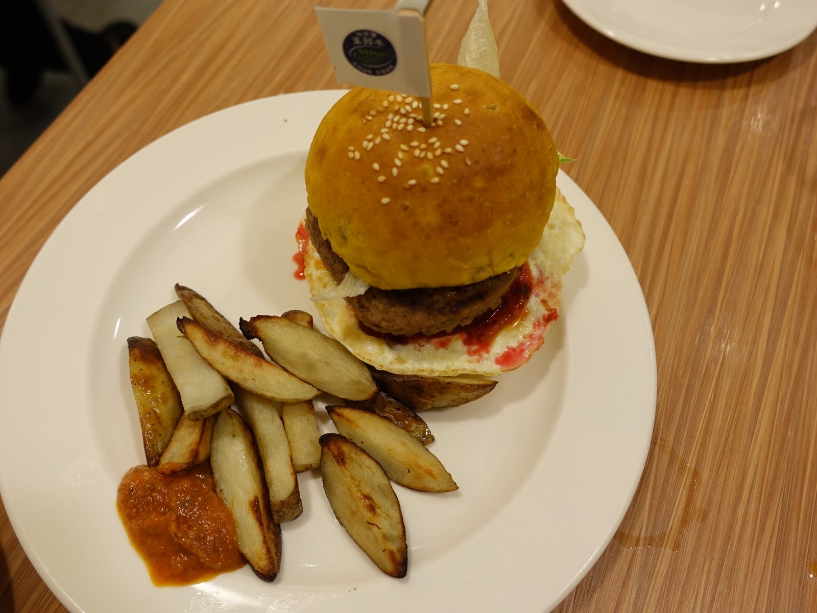 這份Kiwi漢堡是道地的紐西蘭風味,用自家烘焙的麵包夾著來自紐西蘭的Angel Bay安琪貝純牛肉漢堡排、煎蛋、甜菜根、番茄片、生菜,純牛肉製成的漢堡和一般市面上混豬肉的漢堡肉吃起來就是不一樣,肉質口感很自然,沒有太多調味料。