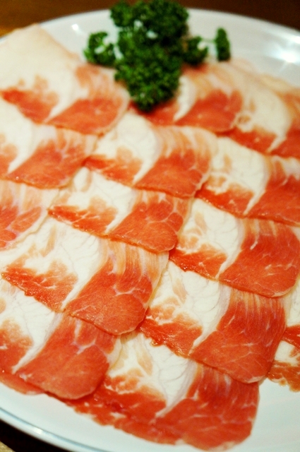 肉片輕柔的川燙幾秒,呈現波浪就可以直接食用,