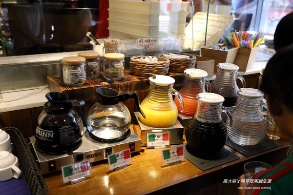 ↑飲品的種類也很多,有咖啡,茶類,果汁等