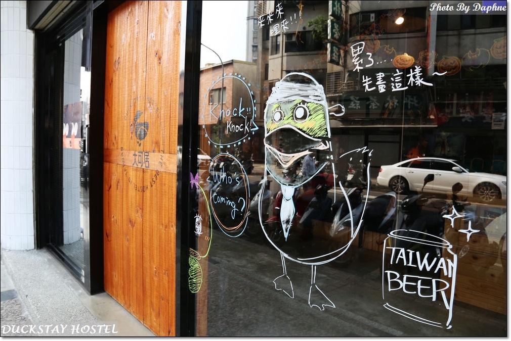 如果不看英文字,看門口不像一間青年旅館,比較像間咖啡店,白牆、木門、玻璃窗在盡是老房、老店面的同條路上特別醒目。