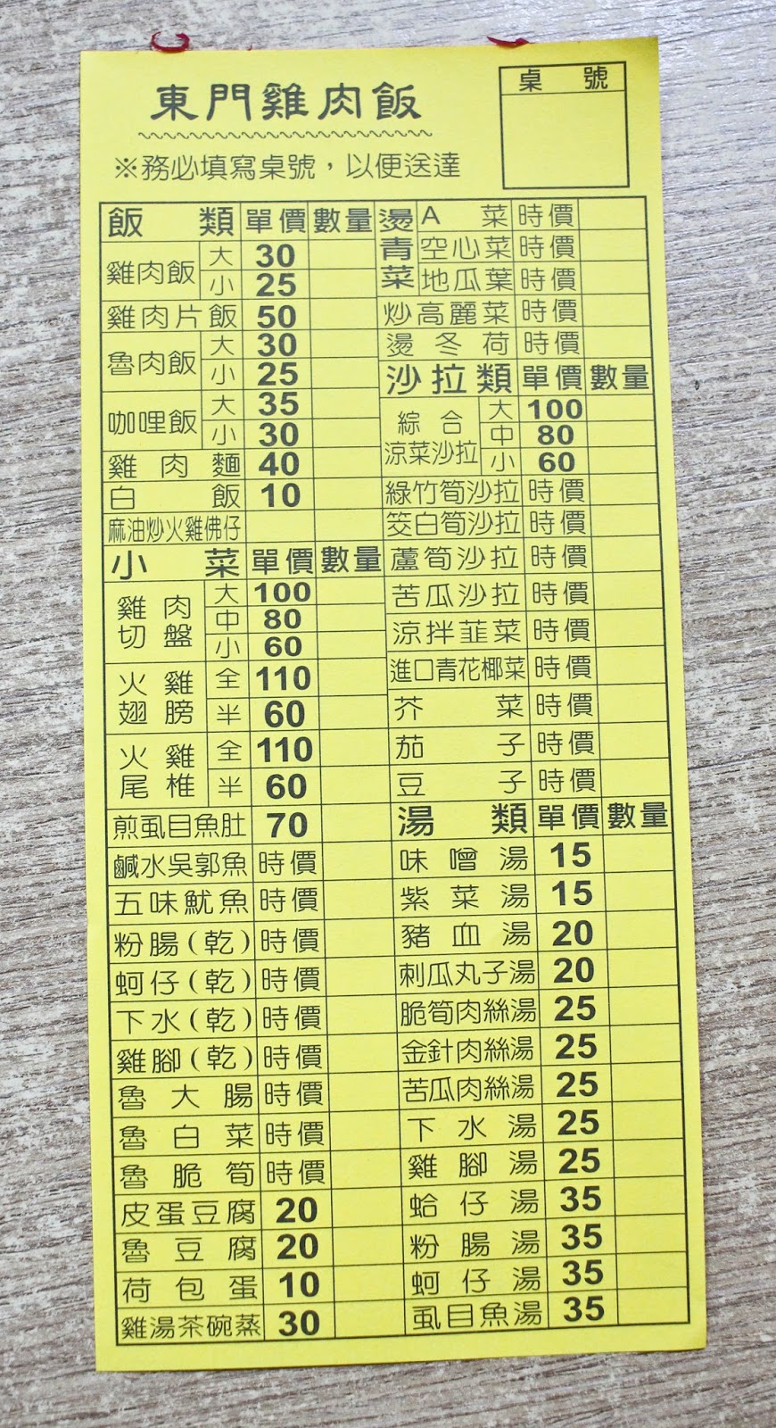 2015.12.12東門嘉義最有名的就是雞肉飯來這裡一定要吃上一碗雞肉飯每家都各有特色各有支持者真叫人難以選擇不過今天是跟著一群人來嘉義所以就跟著帶路的人走只覺得穿過了不少街口經過了傳統市場終於到達東門雞肉飯剛好是吃飯時間店裡面很多人位置數量滿多的不怕找不到座位整體環境很乾淨看到價位這麼便宜覺得老闆根本是佛心來著[雞肉飯]小$25雞肉飯放上油蔥淋上醬油那最熟悉的搭配組合米飯淋上特殊醬油每一粒米吸附飽滿精華恰到好處散發鹹香不過雞肉口感偏乾沒有想像中好吃[咖哩飯]小$30咖哩飯以台式風格呈現稍微經過勾芡帶點粘稠感覺得整體感覺很特別帶著胡椒香氣[高麗菜]時價一大盤的高麗菜是老闆特別招待的[海帶湯]$15[味噌湯]$15味噌湯就是一般傳統台式的感覺味道偏甜[皮蛋豆腐][東門雞肉飯地址:嘉義市東區嘉義光彩街198號]謝謝觀賞~