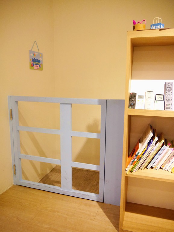 另一側倚牆規畫了迷你童書區,繪本、木製拼圖、有聲書…