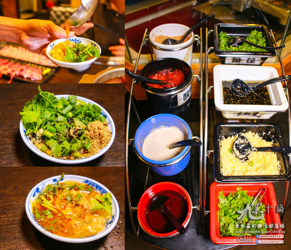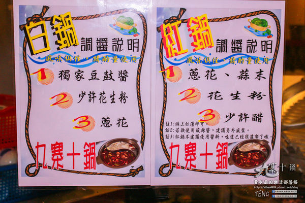 ↑九寨十鍋的醬料區,上頭有印製調製說明。↓