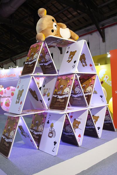 ▲有點擔憂拉拉熊會從撲克牌的頂端不小心滾下來