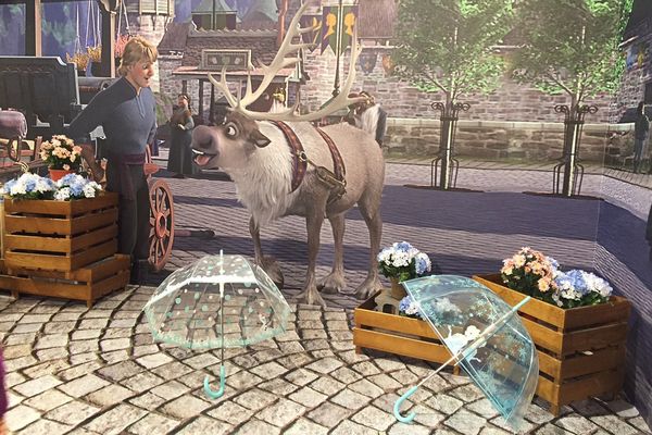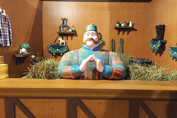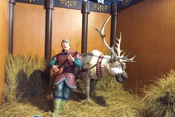Anna在此和奧肯老闆借保暖衣物,準備前往山區找最親愛的姐姐Elsa