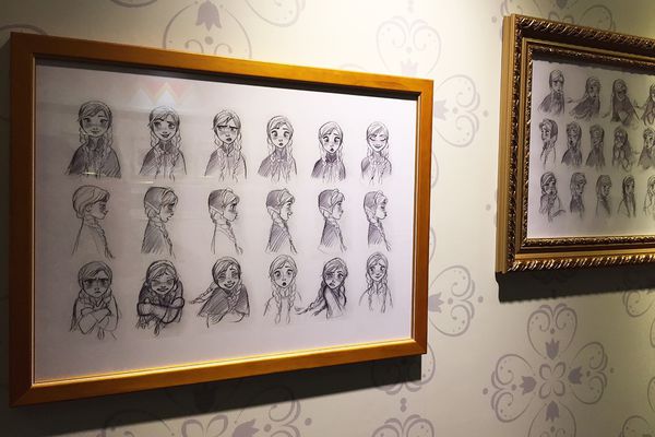 牆上擺掛了迪士尼為冰雪奇緣所設計的原創構思