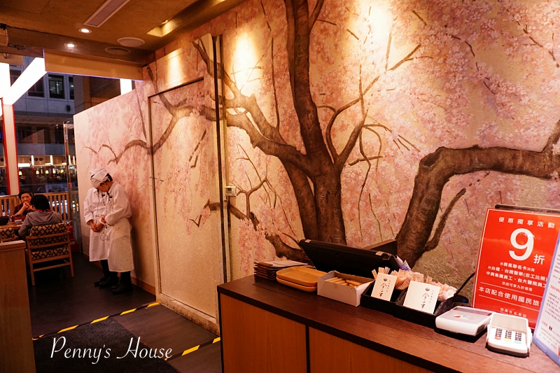 門口牆上的櫻花樹,都是由好幾位日本工藝畫匠特別來創作的,