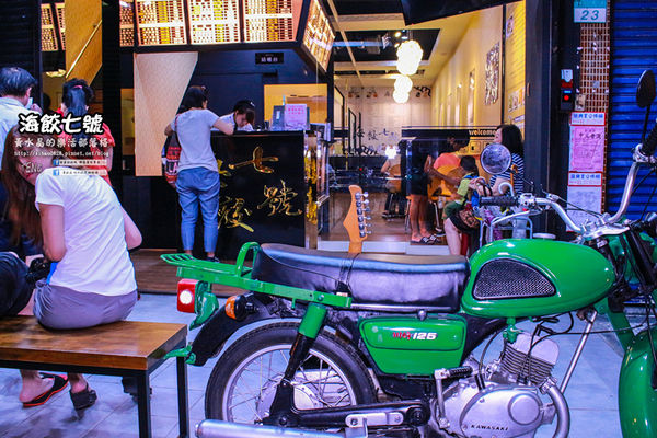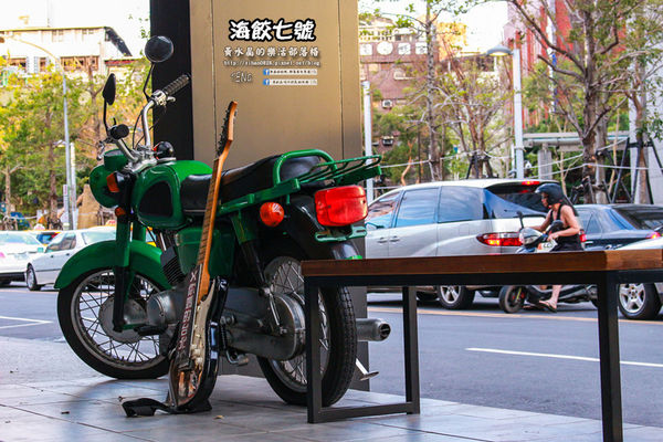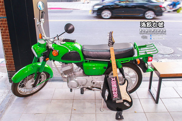 店門口還有一台鎮店機車和吉他,