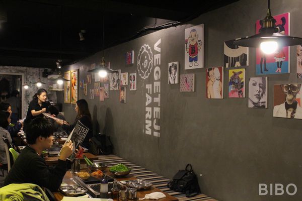 牆底一邊潑漆街頭風,一邊素色,整體的用餐環境乾淨舒適